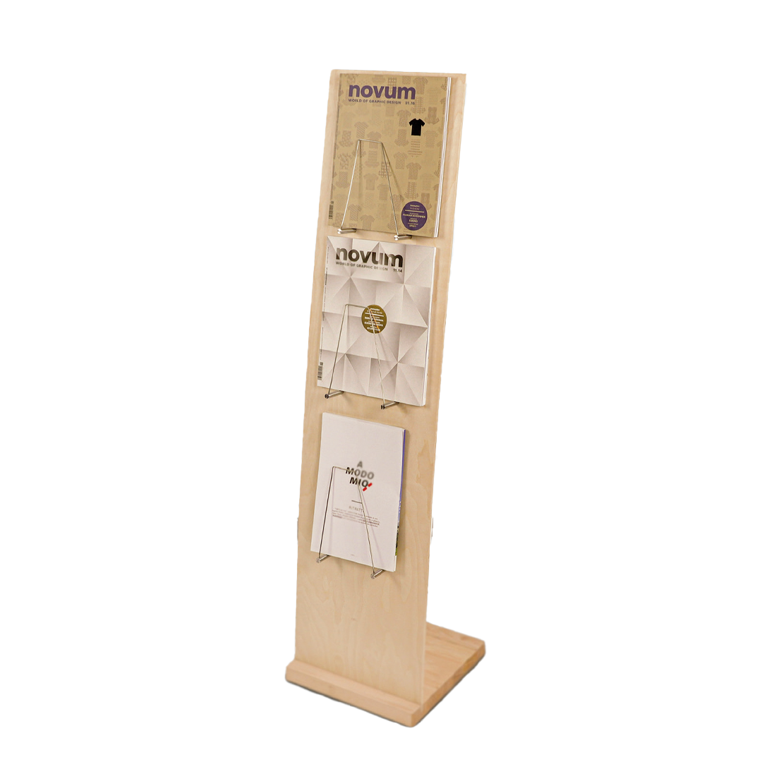 Der Holz Prospektständer Velo Wood ist ein kleiner, feiner Prospekthalter ganz aus Holz und Edelstahl.