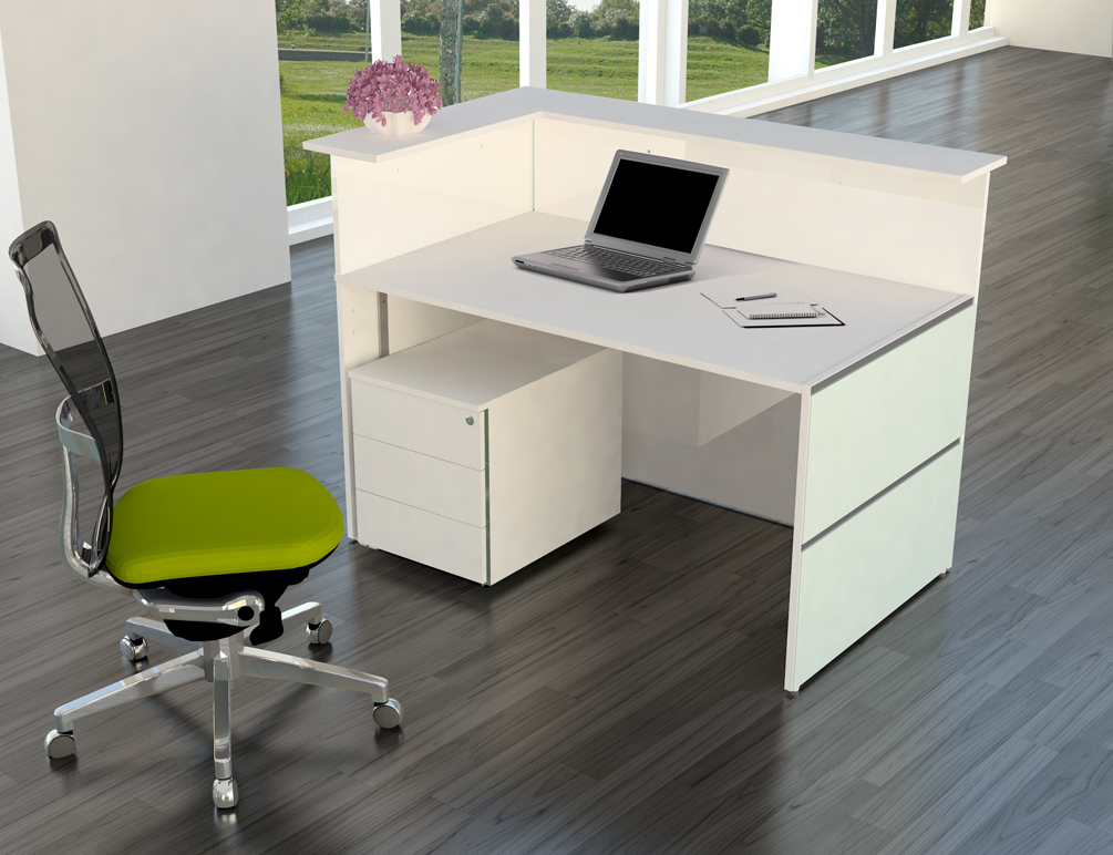 Mit der Empfangstheke Praxis (einseitig offen) wird Ihr Unternehmen stilvoll und elegant präsentiert. Das moderne Design sorgt für einen gelungenen Empfang und bietet auch noch einen vollwertigen Arbeitsplatz mit einer Tiefe von 80 cm und einer Höhe von 75 cm. Durch das einfache Modulsystem, sind Ihnen in Ihrer Konfiguration keine Grenzen gesetzt. Sie können beliebig viele Module an Ihre Theke oder an Ihren Tisch anbauen.
