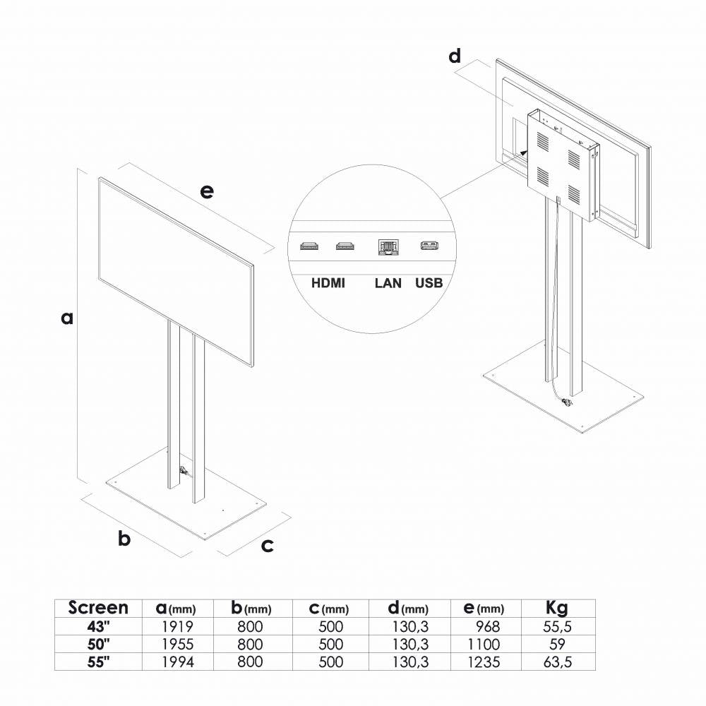 Unser Werbebildschirm mit Bodenständer mit Samsung QMR Bildschirm ist eine hochwertige digitale Anzeigelösung, und eignet sich optimal für Schaufensterfronten, Einzelhandelsgeschäfte und andere öffentliche Bereiche. Die robuste Stahlkonstruktion ist mit einer Pulverbeschichtung in RAL 9005 - Tiefschwarz versehen. Eine kompatible VESA-Halterung ermöglicht die Verwendung gängiger 43-Zoll, 50-Zoll und 55-Zoll Bildschirme. Präsentieren Sie vielfältige Botschaften und Produktwerbung zum perfekten Zeitpunkt mit dem digitalen Schaufensterdisplay. Das Display besteht aus einem Bildschirm der Samsung QMR-Serie. Das Gehäuse kann auch in Kombination mit anderen VESA-kompatiblen Displays verwendet werden. Die Bildschirme werden im Originalkarton verschickt, während die Gehäuseeinheiten sicher auf Paletten verpackt und versendet werden.