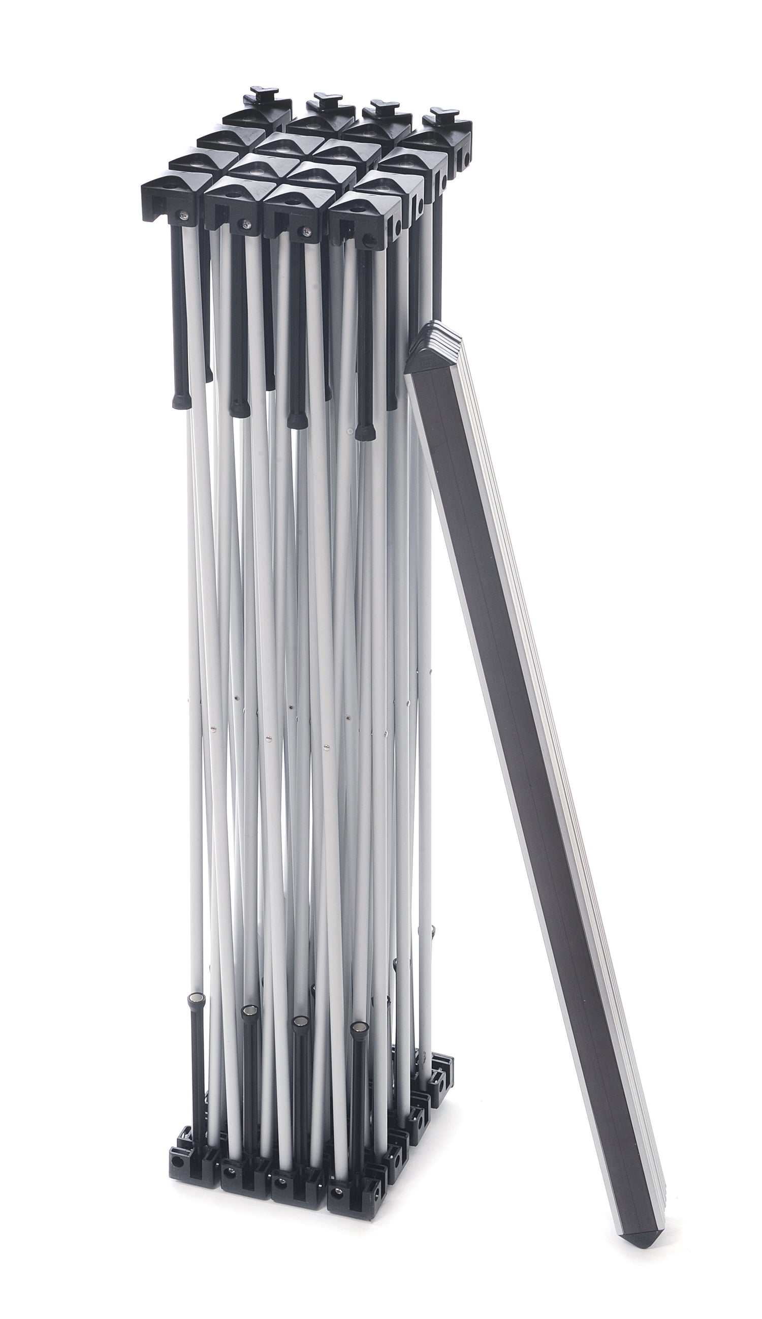 Die Faltdisplay-Wand "SnapUp classic 3x3" ist innerhalb von 5 Minuten, ohne Werkzeug aufbaubar. Unsere Premium-Druckbahnen werden per Magnettechnik am Faltgestell montiert und sind zum Transport zusammenrollbar.