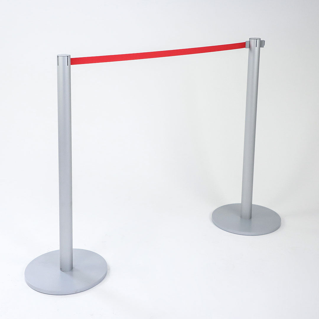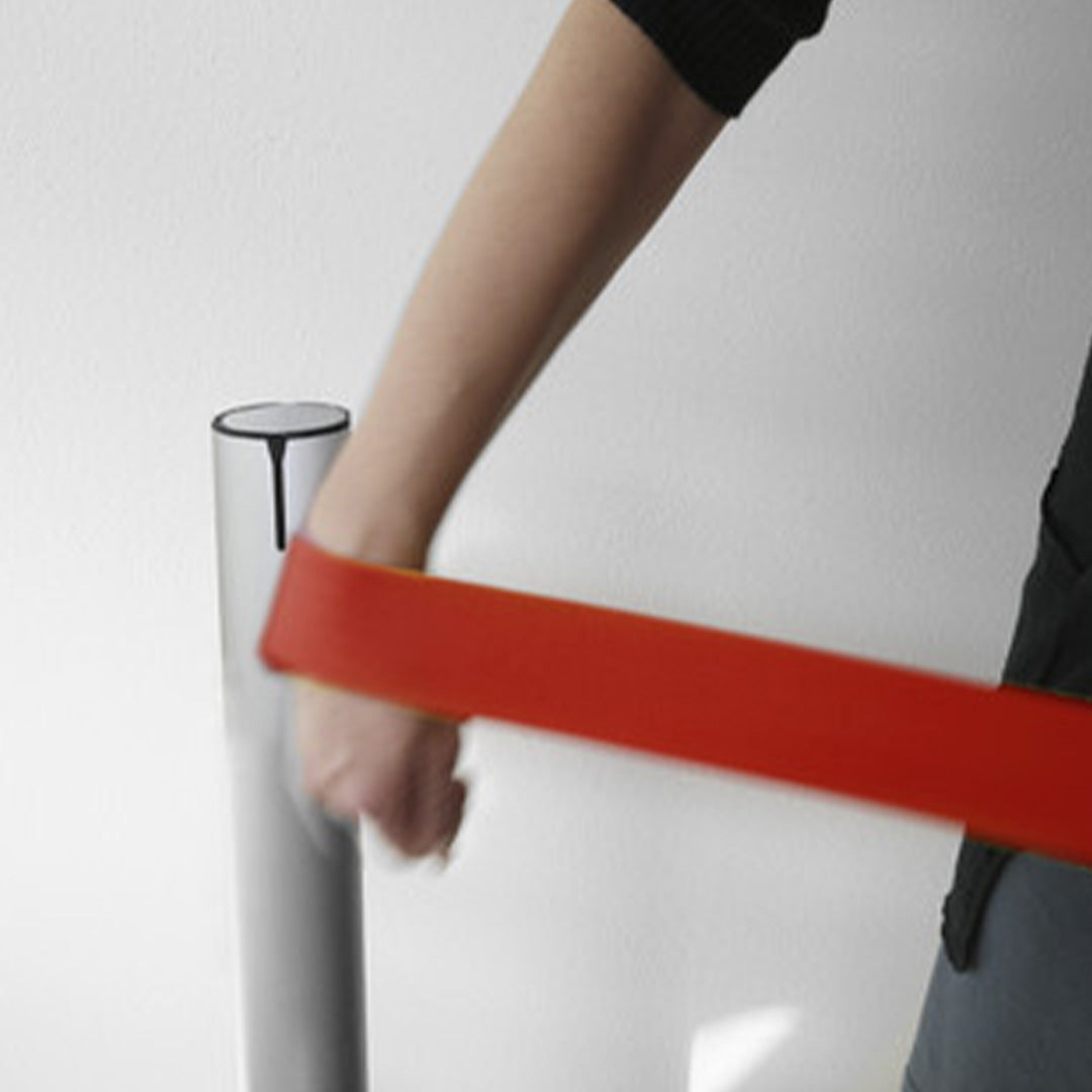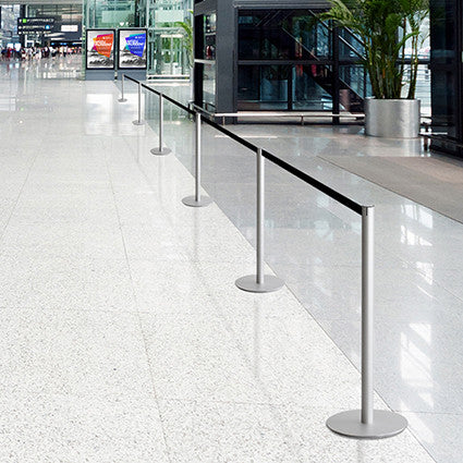 Mit diesem Personenleitsystem können Sie ihre Kunden im Geschäft leiten. Abstände können bewahrt und Bereiche abgetrennt werden. Auch gegen unkontrollierten Zugang von allen Seiten können zum Beispiel sensible Kassenbereiche gesichert werden. Gerade in Zeiten von Corona können Sie dem Kunden so eine Orientierung geben - und schützen somit nicht nur ihre Kunden sondern auch ihre Mitarbeiter. Die Stützen sind in den Farben silber und schwarz vorhanden und sind ein innovativer und platzsparender Gurtständer geringen Gewichts, mit stabilem Standfuß. Mit diesen Stützen haben sie ein flexibles und portables Personenleitsystem, das mühelos aufzubewahren, zu transportieren und einzusetzen ist. Der selbstspannende Gurt lässt sich leicht aus der Pfostenkassette ziehen und am nächsten Ständer einhängen.