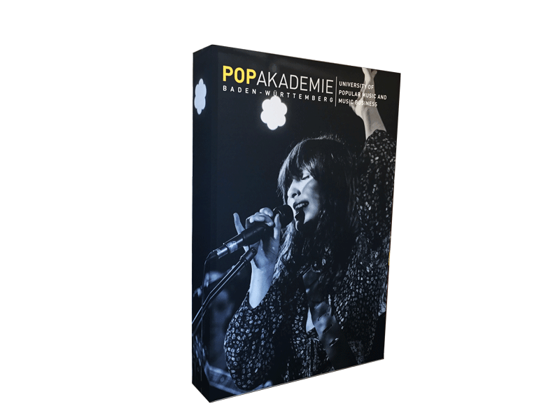 - gerades Faltdisplay mit Spannrahmentechnik und Kederprofil