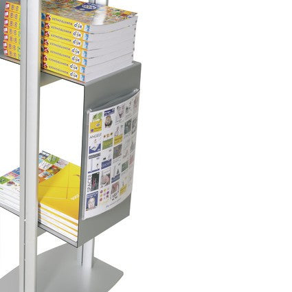 Der Katalogständer "Cubic" bietet Ihnen jede Menge Platz für die Präsentation Ihrer Kataloge, Informationsmappen oder Broschüren im A4 Format. "Cubic" verfügt über zwei solide, in S-Form angeordnete Aluminium-Ablagen, die die Entnahme Ihres Printmaterials aus zwei Richtungen ermöglichen. Die Rahmenkonstruktion aus hochwertigen Aluminium-Profilen, die auf der silber lackierten Bodenplatte montiert werden, sind nicht nur außerordentlich stabil, sondern ebenfalls ein echter Hingucker.