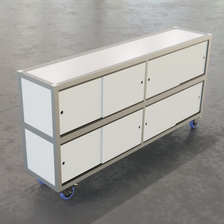 Entdecken Sie unsere mobilen Sideboards – speziell entwickelt für den professionellen Einsatz auf Messen, Promotionaktionen, Roadshows und Events. Jedes Sideboard ist abschließbar, robust und individuell konfigurierbar – perfekt für den flexiblen Einsatz vor Ort.