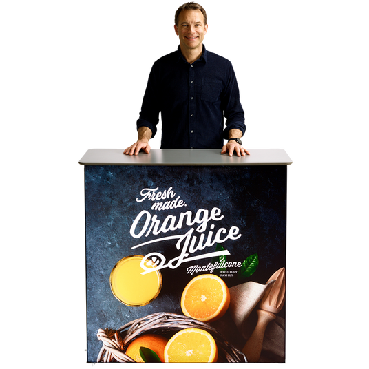Faltbare, hochwertige Theken für Messe, Promotion und Event – schnell aufgebaut, leicht transportiert, individuell gebrandet