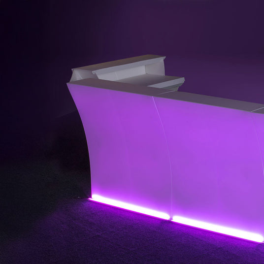 Verwandeln Sie Ihre FLUX ARC Bar mit LED-Beleuchtung in einen echten Eyecatcher! Dank modernster LED-Technik können Sie die Lichtfarbe individuell per Fernbedienung einstellen, um die Bar perfekt an Ihr Event, Ihre Marke oder Ihr Ambiente anzupassen.