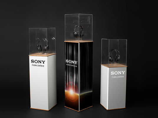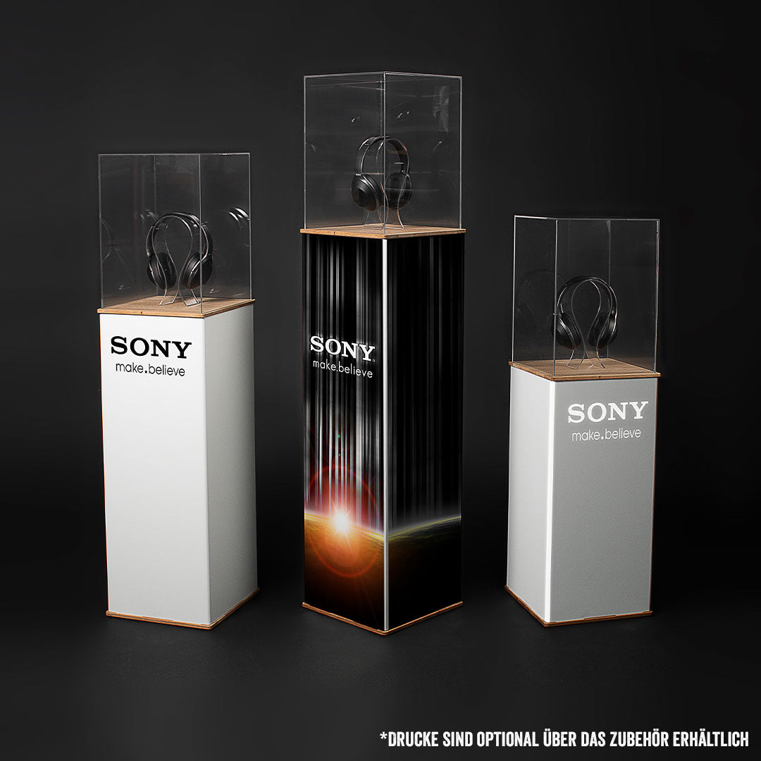 Der FLUX BLOX Presenter ist in zwei Größen (30x30 cm & 40x40 cm) sowie in drei Höhen (60 cm, 80 cm & 100 cm) erhältlich. Für maßgeschneiderte Lösungen bieten wir zudem individuelle Anfertigungen nach Ihren Wünschen an.