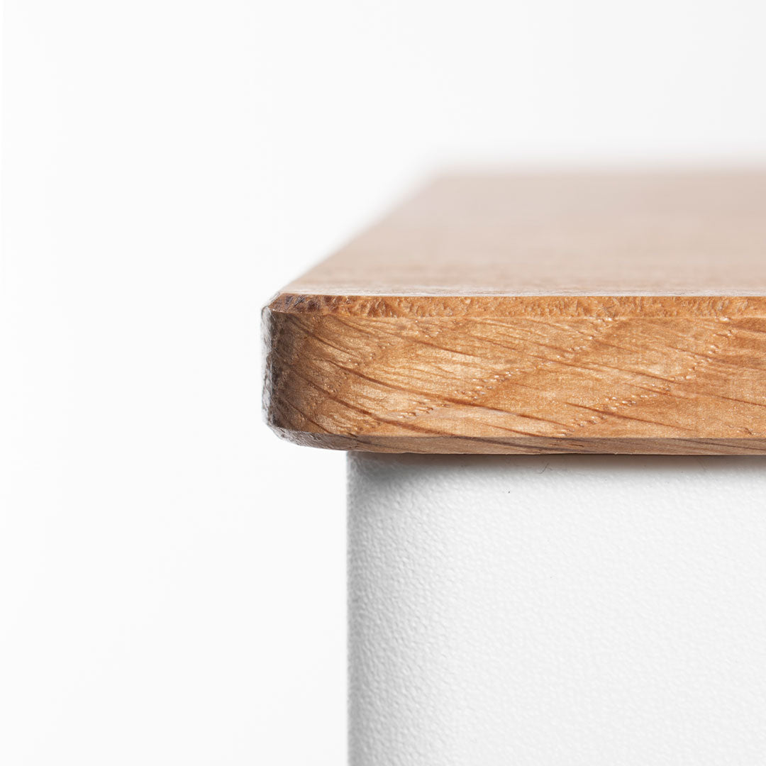 Das smarte Stecksystem ermöglicht einen schnellen, werkzeugfreien Aufbau, sodass das Podest in Sekundenschnelle einsatzbereit ist. Der Korpus besteht aus nachhaltigem, leicht zu reinigendem Polypropylen, während die massiven, matt lackierten Eichenplatten für einen hochwertigen, stabilen Abschluss sorgen.
