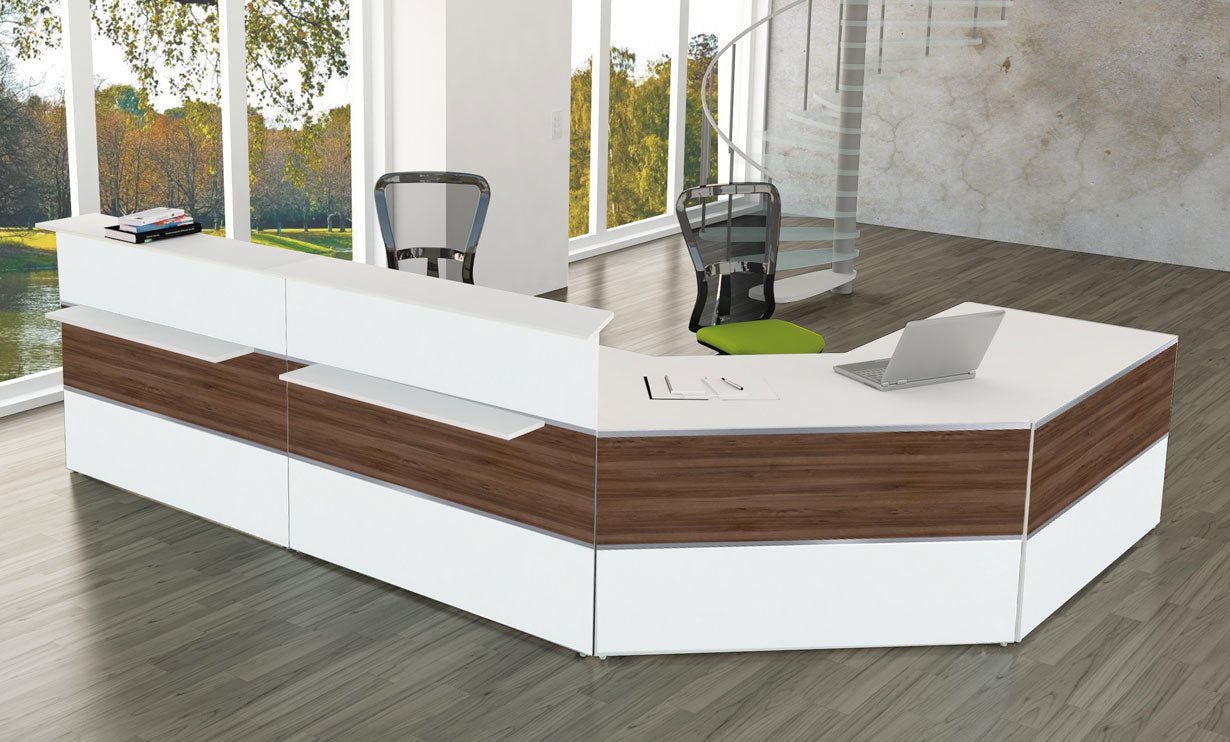 Unsere Empfangstheke Lobby (L-Form), hinterlässt mit ihren dekorativen Nussbaumelementen garantiert einen positiven Eindruck bei Ihren Besuchern. Außerdem bietet sie auch noch zwei vollwertige Arbeitsplätze mit einer Tiefe von 80 cm und einer Höhe von 75 cm. Durch das Modulsystem unserer Empfangstheken, sind Ihnen in Ihrer Konfiguration keine Grenzen gesetzt. Sie können beliebig viele Module an Ihre Theke oder an Ihren Tisch anbauen und so ganz einfach mehrere Arbeitsplätze schaffen.