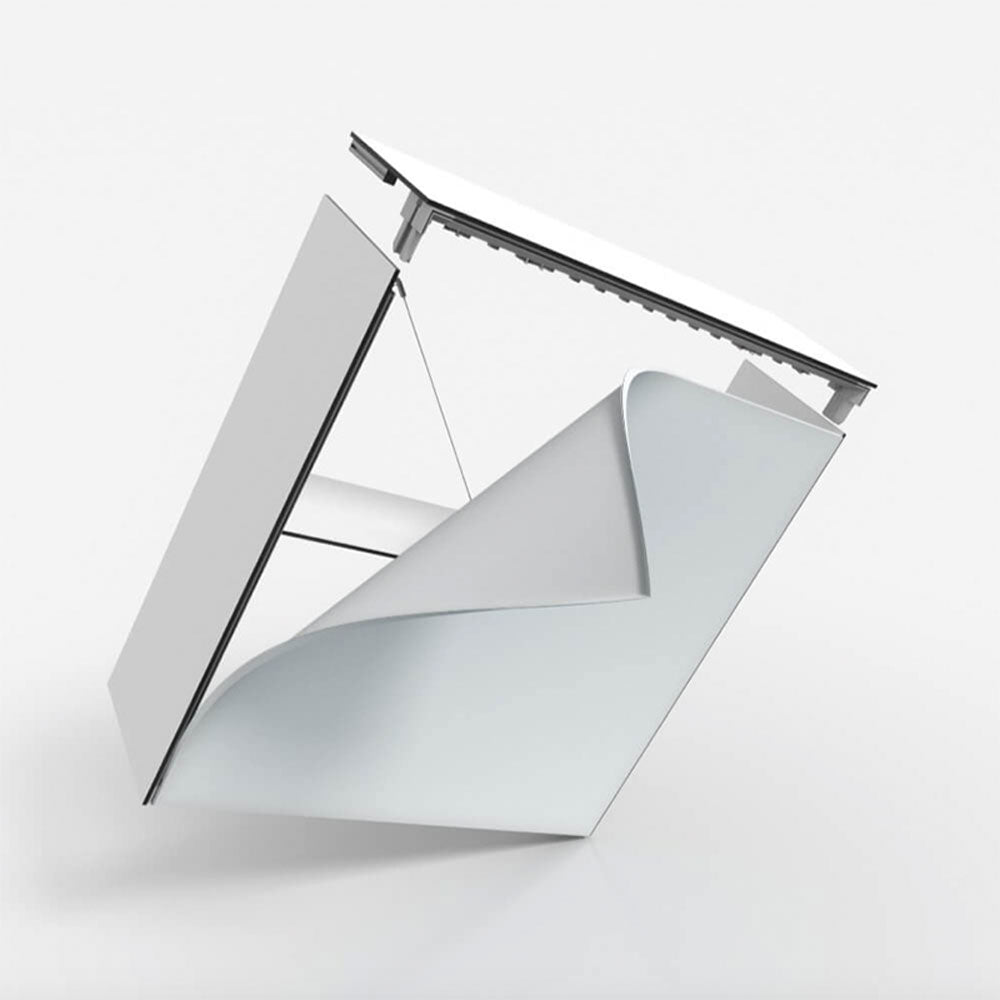Bei der Rahmenbespannung handelt es sich um hochwertige und extrem lichtechte Textilien, die im Direktdruckverfahren mit umweltfreundlicher UV-Tinte bedruckt werden. Dank der doppelt vernähten Silikonkeder und dem elastischen Anteil im Gewebe lassen sich die Drucke problemlos in die Kunststoffprofile einspannen und bilden somit eine knitterfreie Oberfläche. Alle Textilien sind gemäß DIN B1 schwer entflammbar.