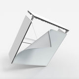 Mit der Breite von 102 cm und einer Höhe von 103 cm bietet eine entspannte Arbeitshöhe auch für lange Promotions oder Messetage. Auf der 33 cm tiefen Thekenplatte ist dabei Platz, um Werbematerialien auszustellen oder, um als Schreibunterlage genutzt zu werden. Schützen Sie wichtige Unterlagen durch die abschließbaren Schiebetüren. Das besonders leichte Gewicht von gerade einmal 13 Kg, das geringe Packmaß der Tasche ermöglichen einen komfortablen Transport im eigenen PKW oder sogar in öffentlichen Verkehrsmitteln.