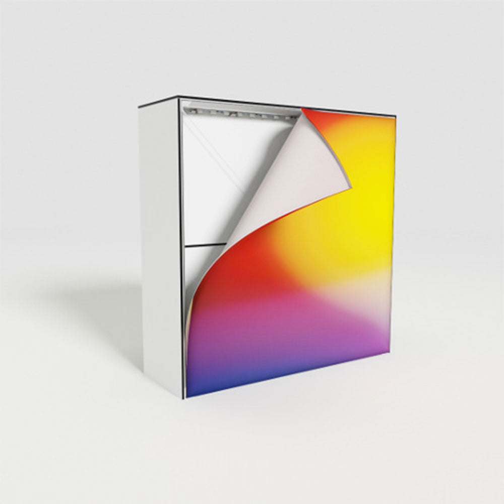 LED Counter mit abschließbaren Schiebetüren - ohne bedruckte Counterplatte und Seitenwände ist auf Lager und wird versandt, sobald es wieder verfügbar ist
